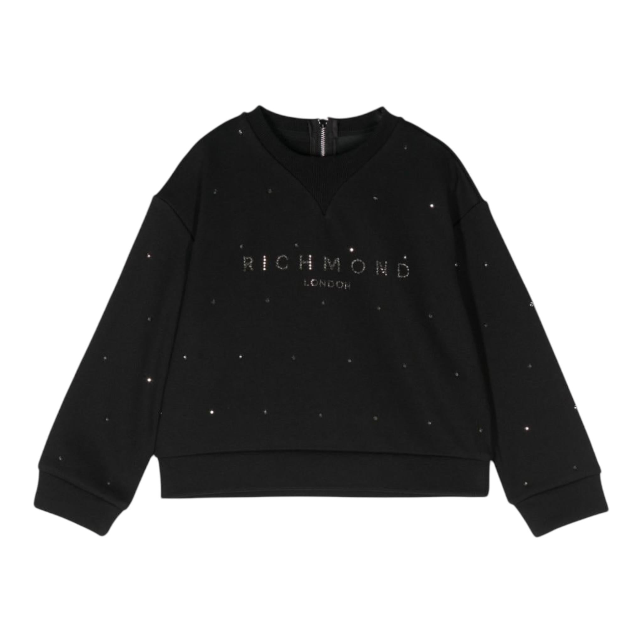 JOHN RICHMOND felpa chiusa girocollo tinta unita con brillantini Nero per Bambina