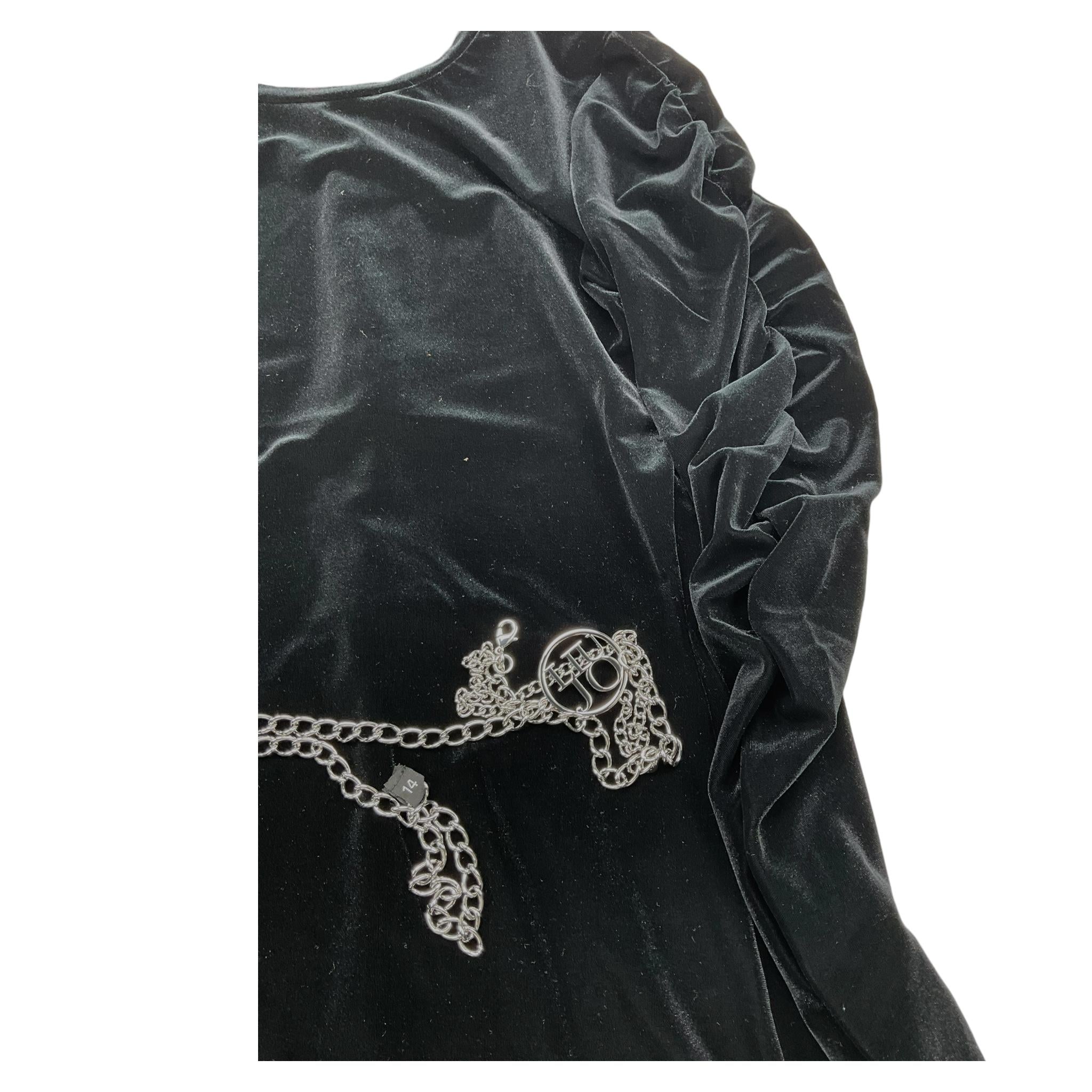 LIU JO abito manica lunga tinta unita in velluto e catena Nero per Bambina