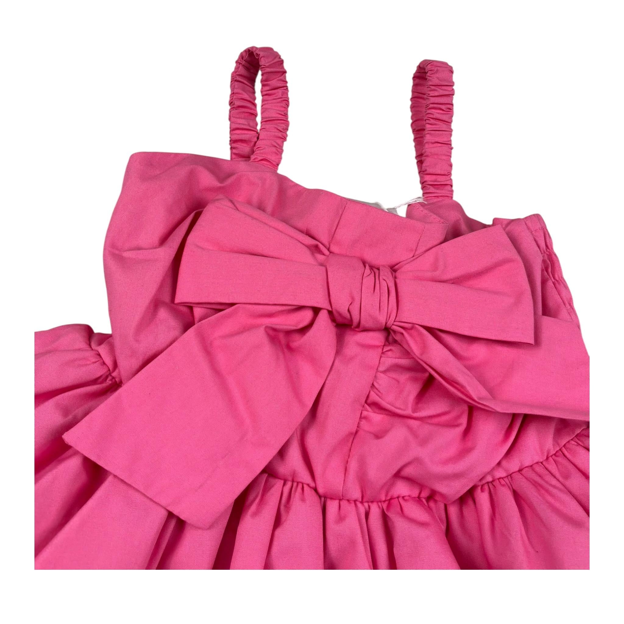 M+E' Abito Giromanica Tinta Unita Con Fiocco Firmata M+E'. Realizzata in: 100% Cotone. Articolo per Bambina