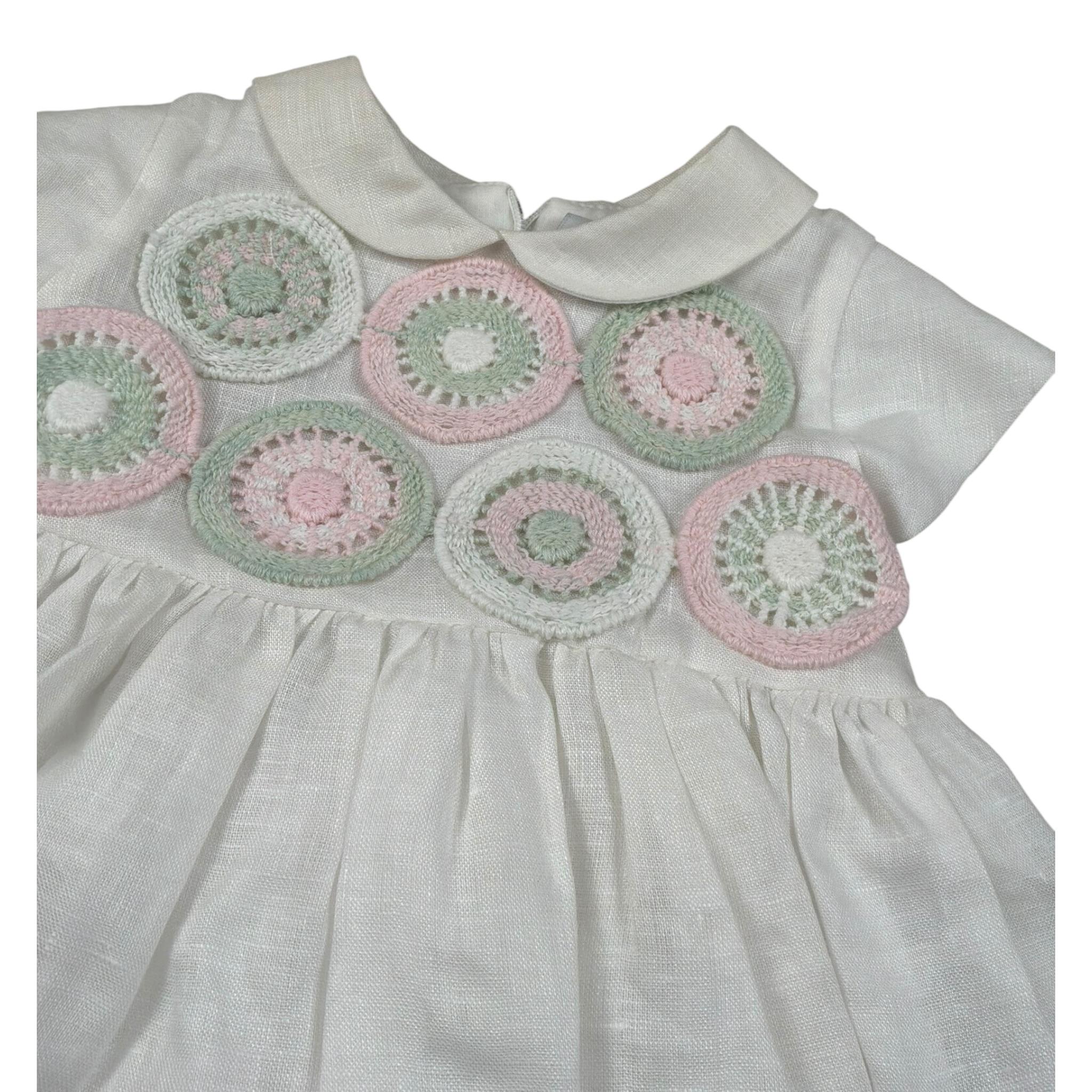 Marlu' Abito Mezza Manica Tinta Unita con Ricami per Neonata