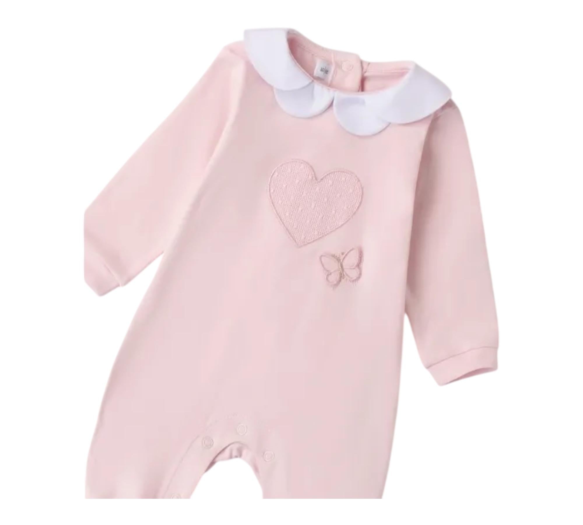 Minibanda Tutina Manca Lunga Tinta Unita con Cuore per Neonata