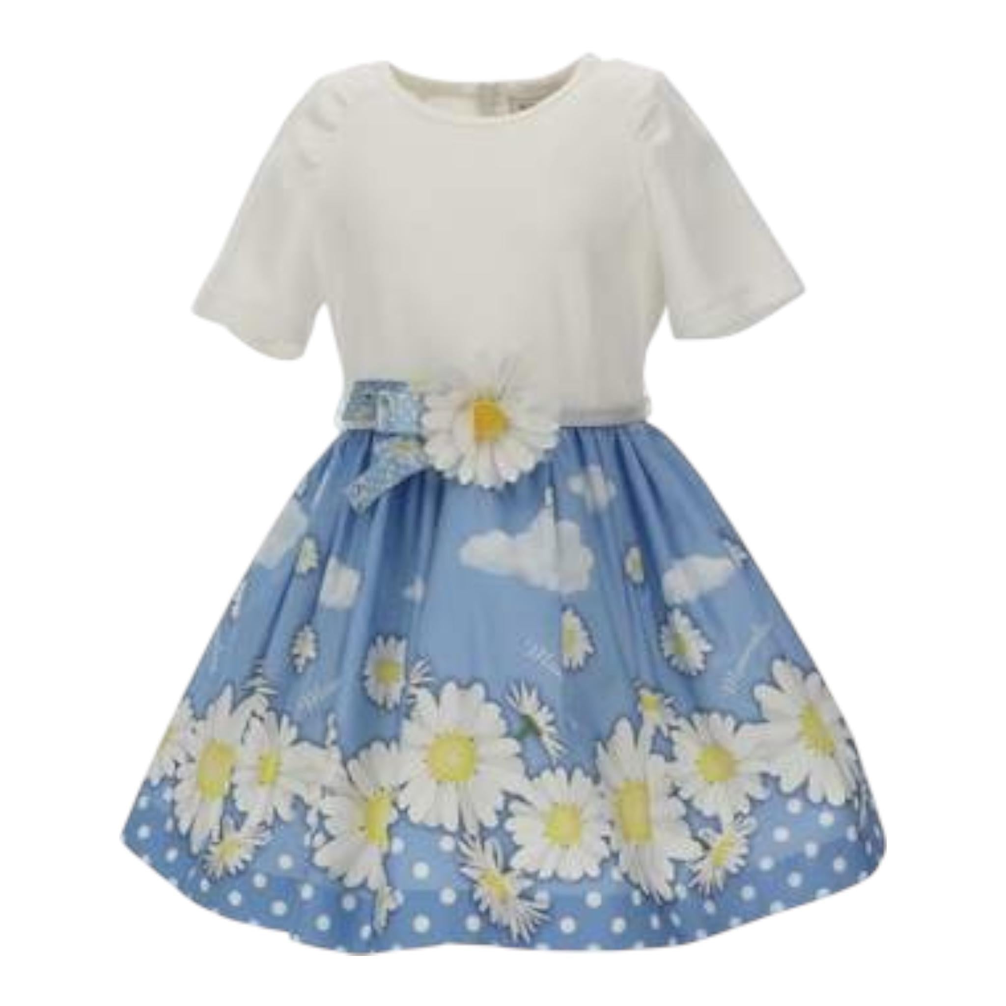 Monnalisa Abito Bicolore con Fantasia Margherite per Neonata