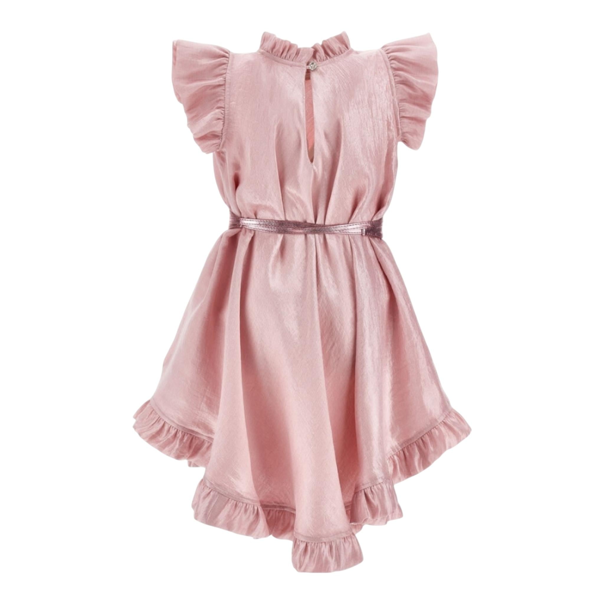 Monnalisa Abito Tinta Unita con Cintura per Bambina