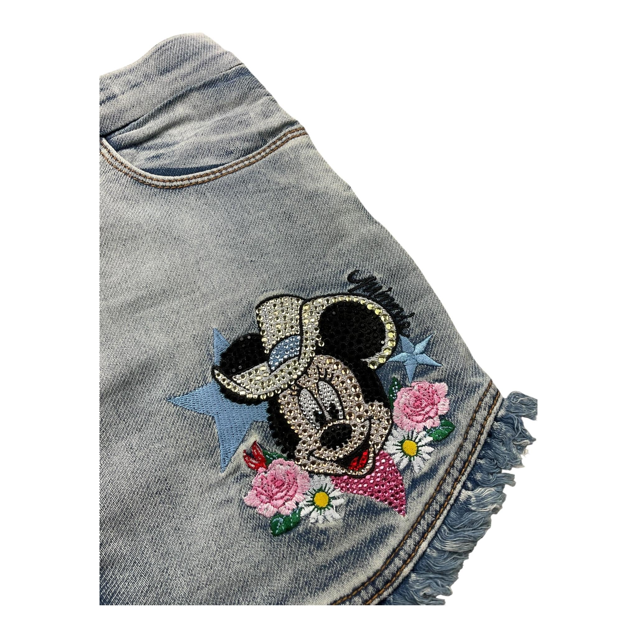 Monnalisa Gonna In Denim Tinta Unita con Brillantini per Bambina