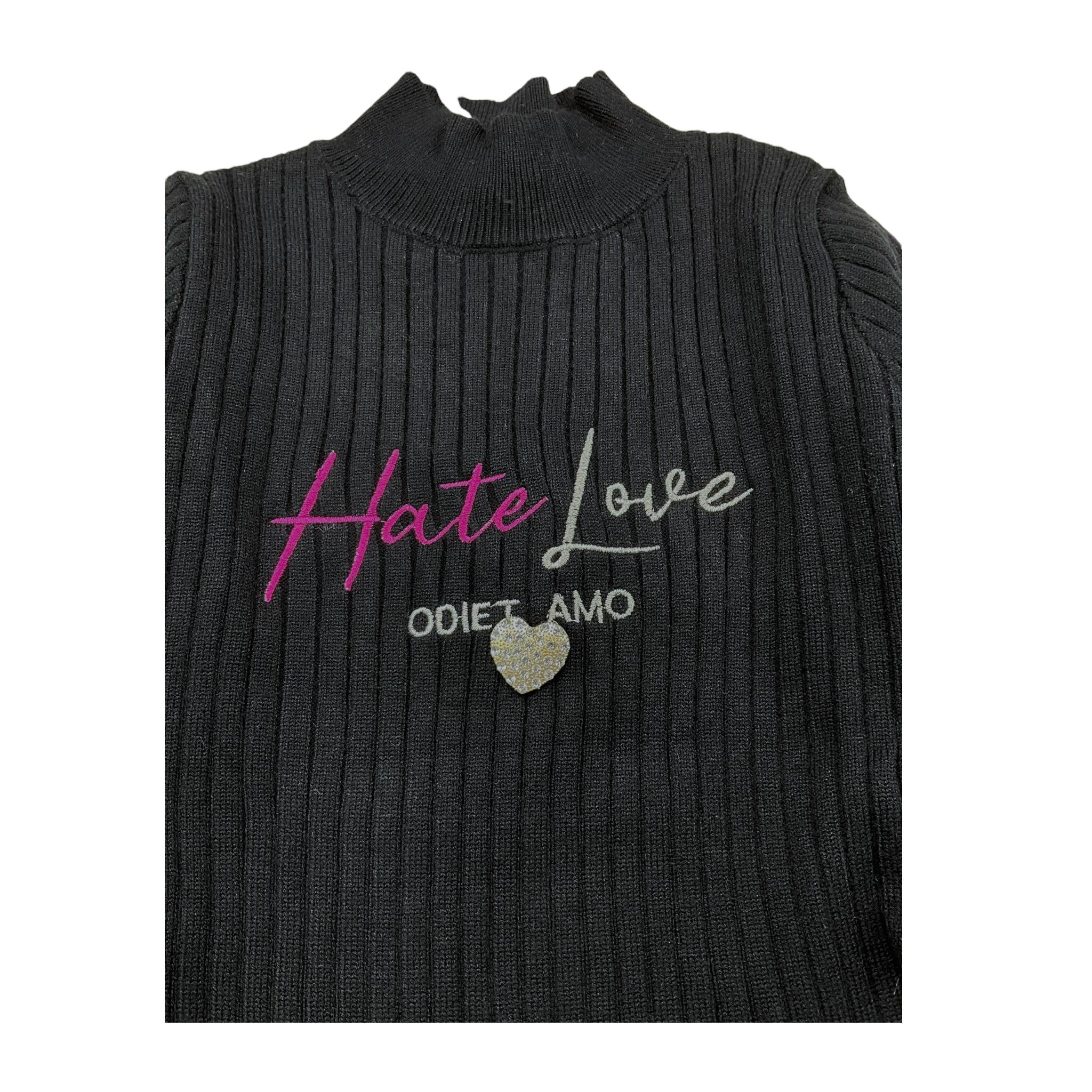 ODI ET AMO abito manica lunga tinta unita con ricami Nero per Bambina