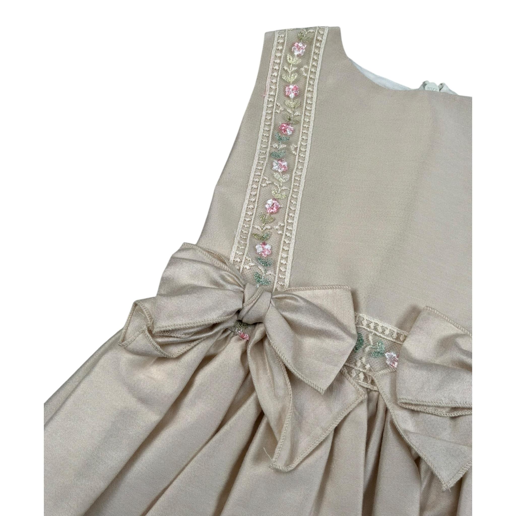 Pure Firenze Abito Giromanica Tinta Unita con Ricamii per Neonata