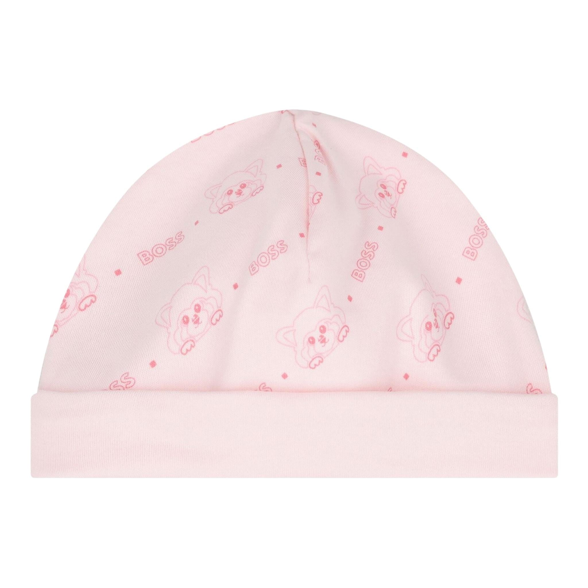 Boss Completo 3 Pezzi Tutina-Cappello-Bavetta Tinta Unita per Neonata J52197 ROSA BOSS