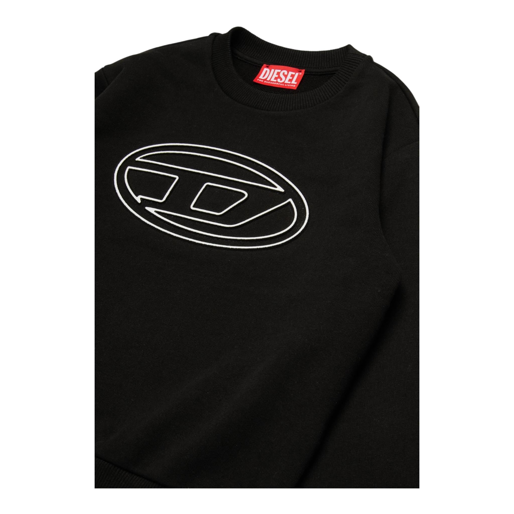 DIESEL felpa chiusa girocollo tinta unita con stampa Nero per Bambino