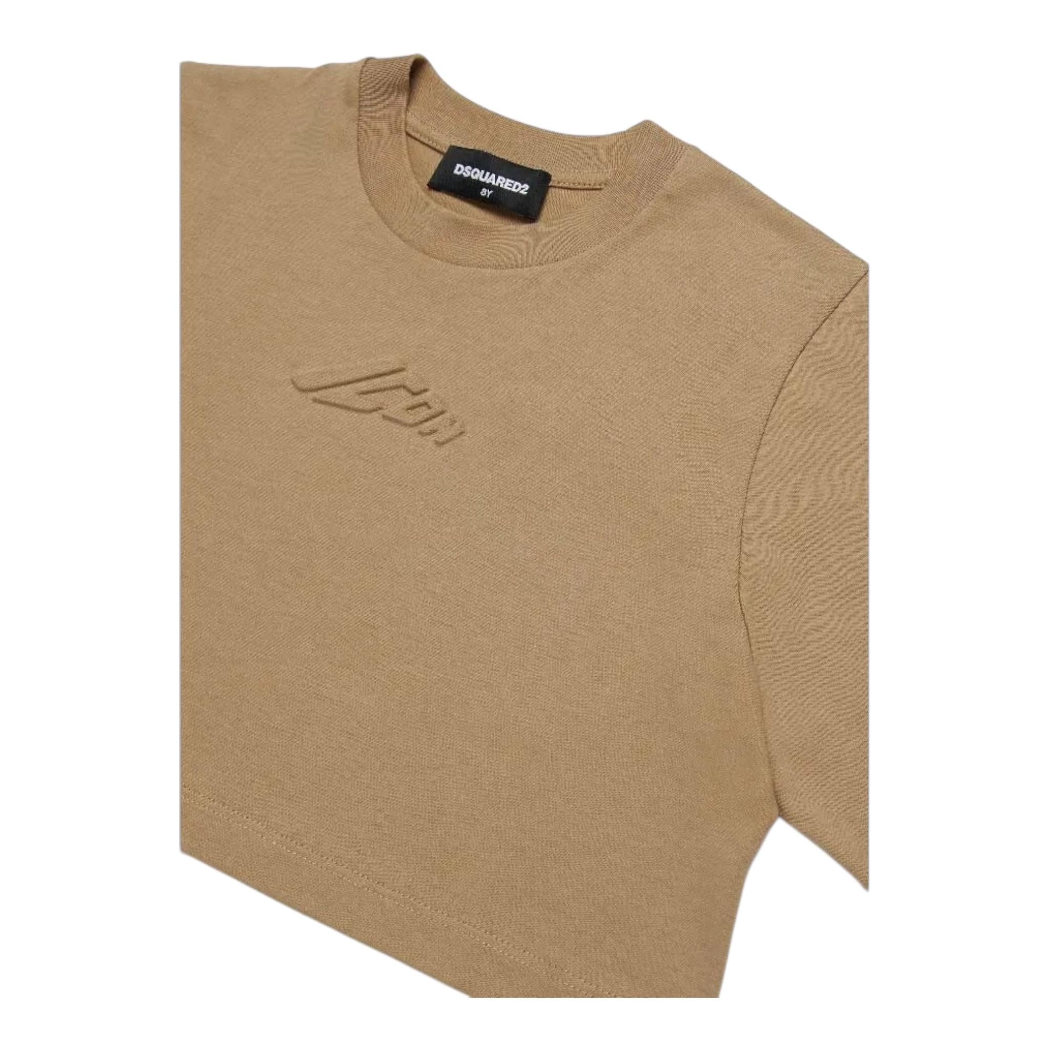 Dsquared2 T-Shirt Girocollo Tinta Unita con Stampa Modello Crop per Bambina