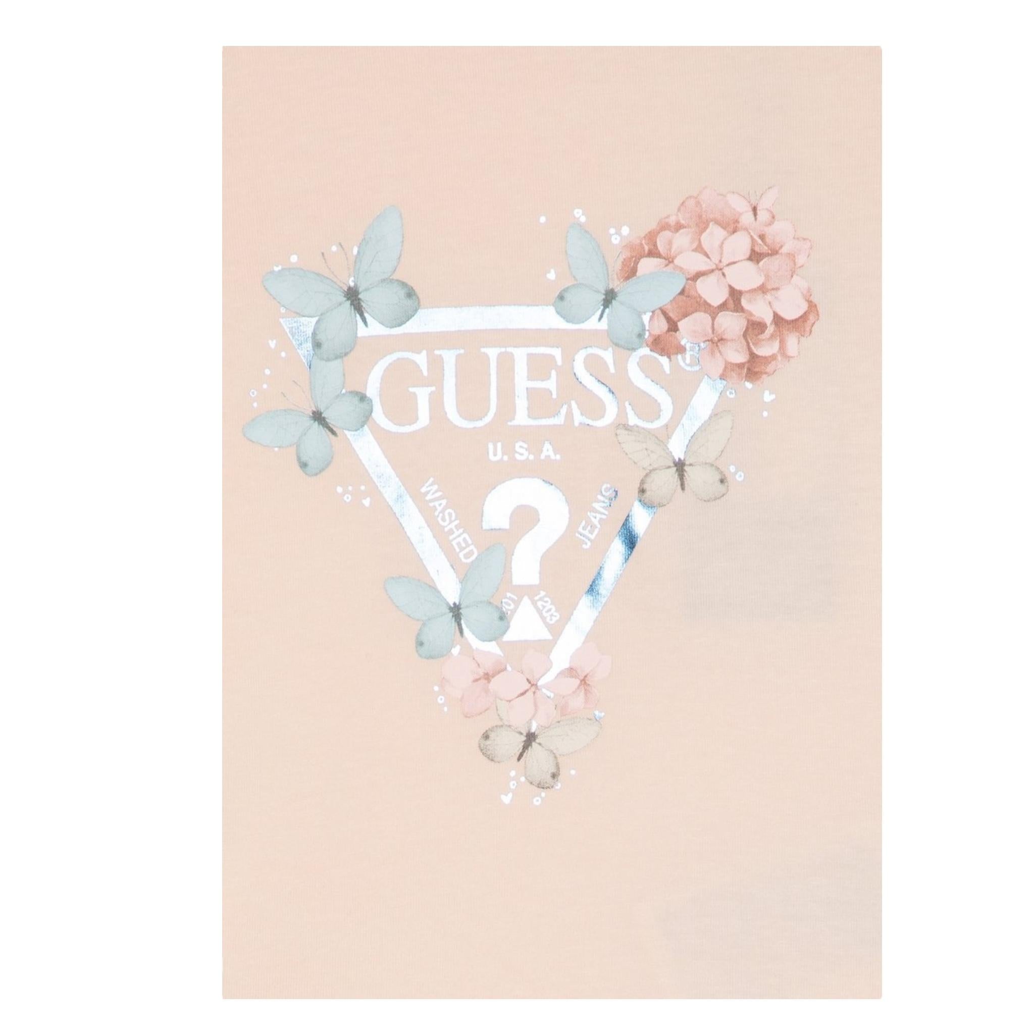 Guess T-Shirt Girocollo Tinta Unita con Logo per Bambina