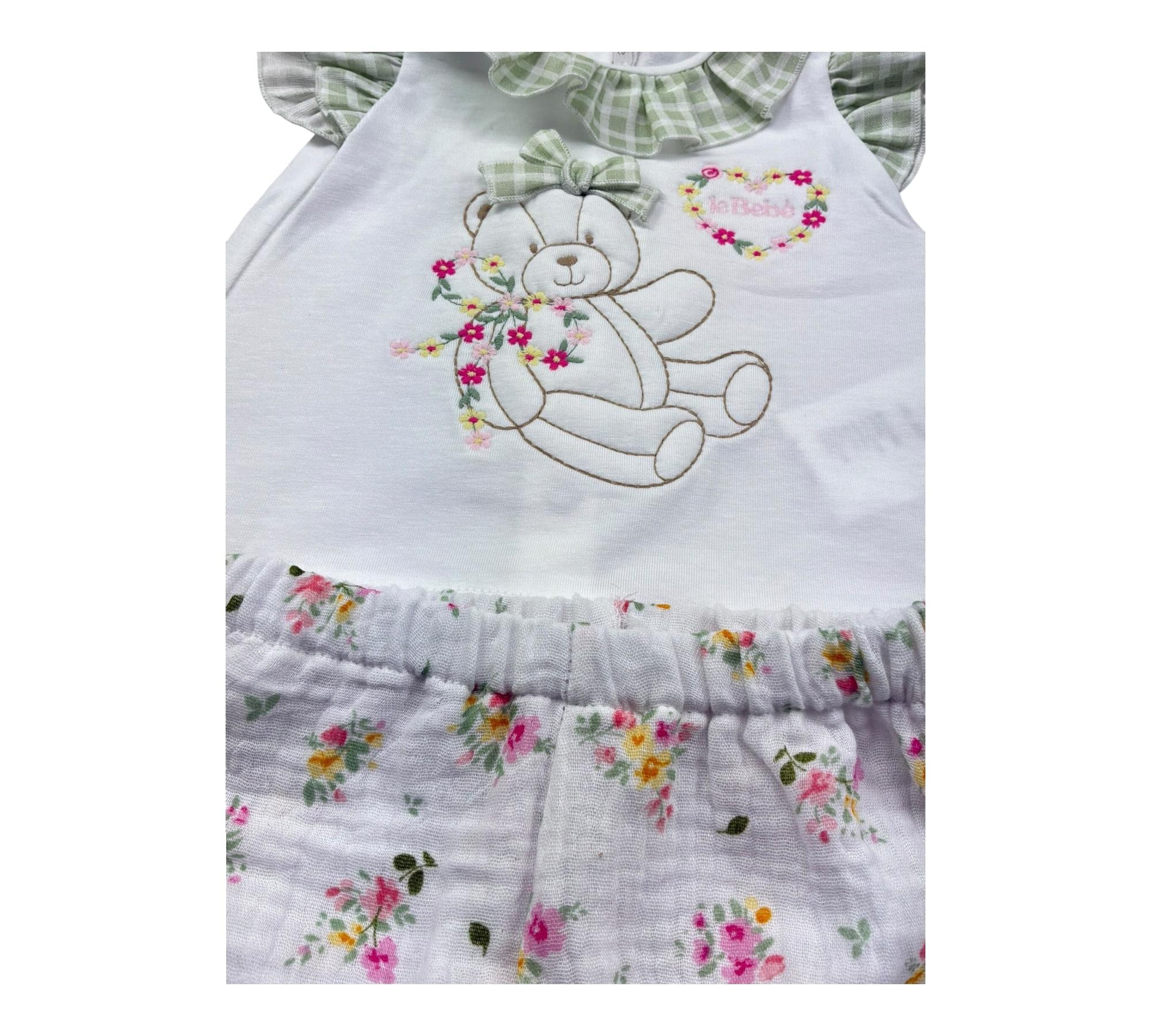 Le Bebe Completo 2 Pezzi T-Shirt-Culotte per Neonata LBG6231 BIANCO LE BEBE