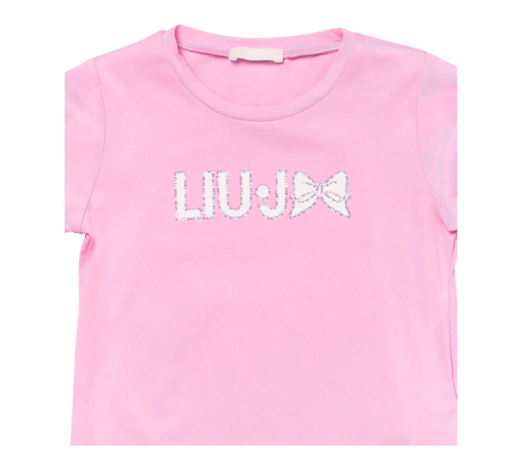 Liu Jo T-Shirt Girocollo Tinta Unita con Brillantini per Neonata