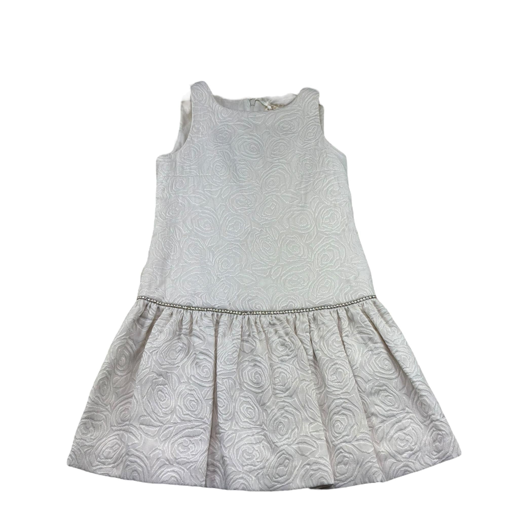 Monnalisa Abito Tinta Unita Giromanica con Ricami per Bambina