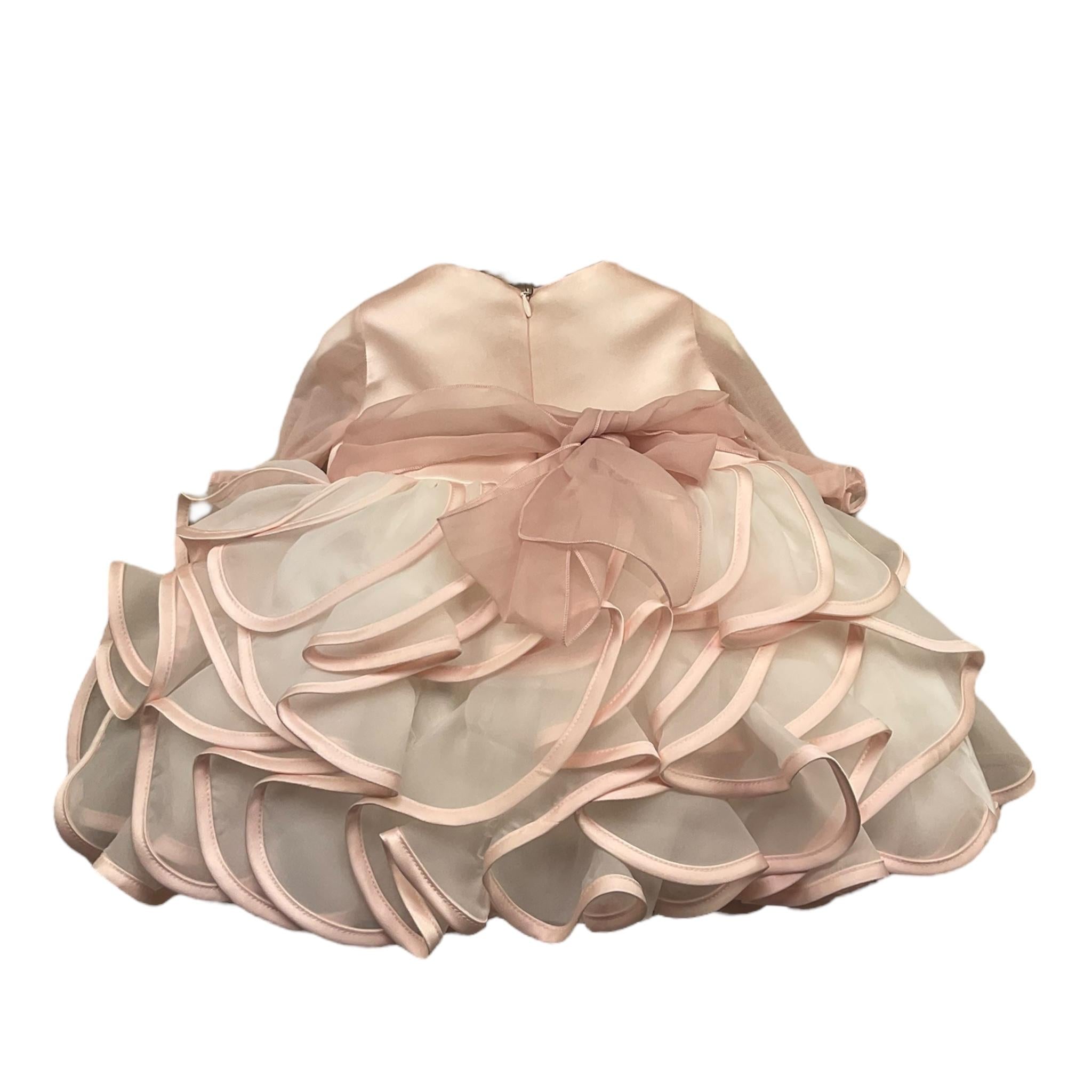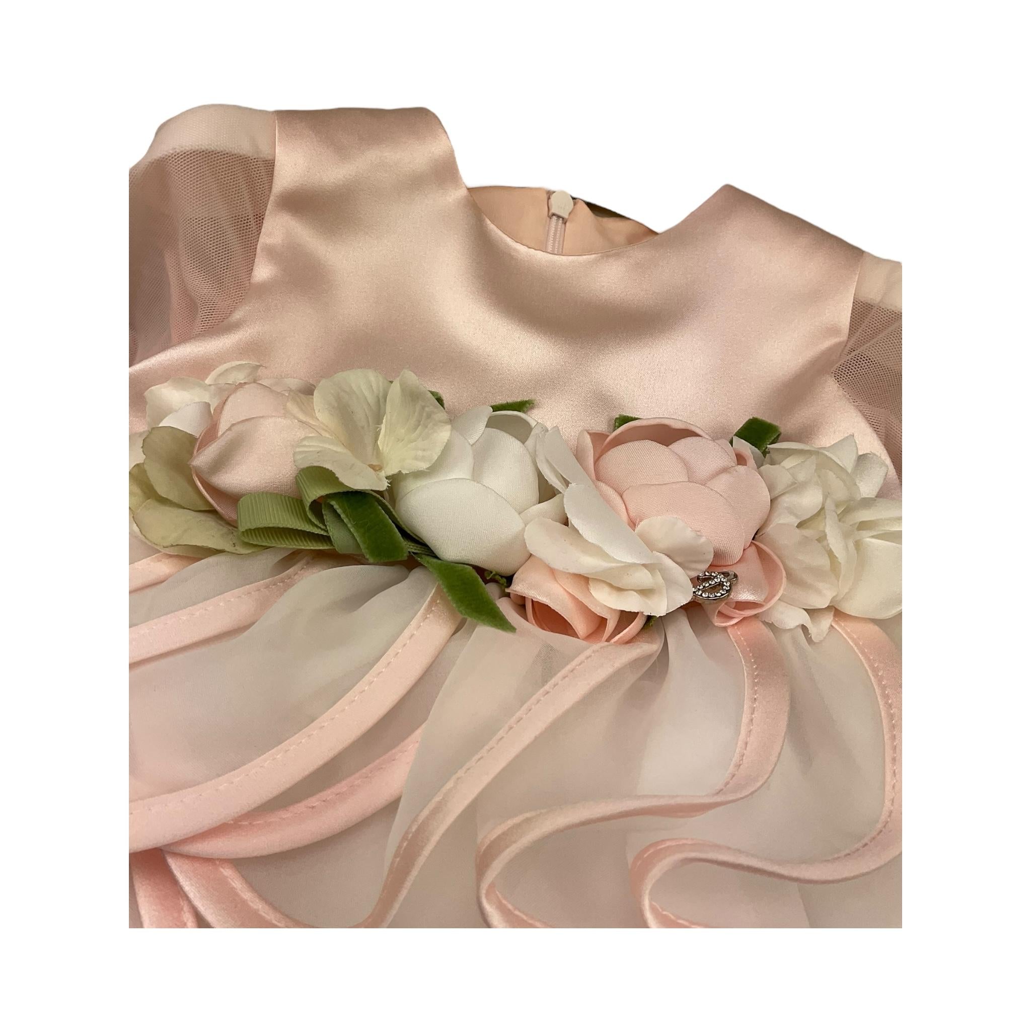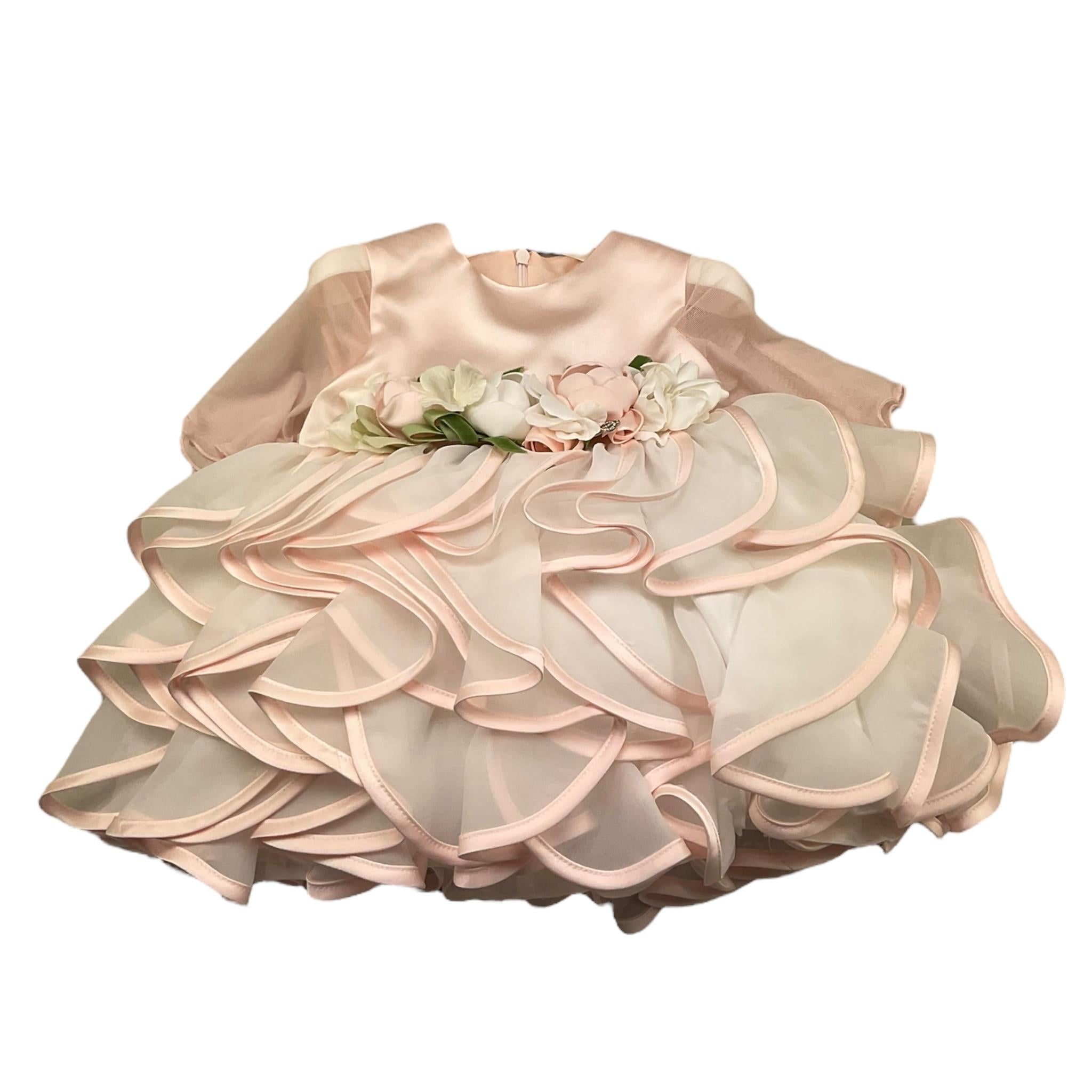 Petit Abito Manica Lunga Velata Tinta Unita con Applicazioni Fiori per Neonata