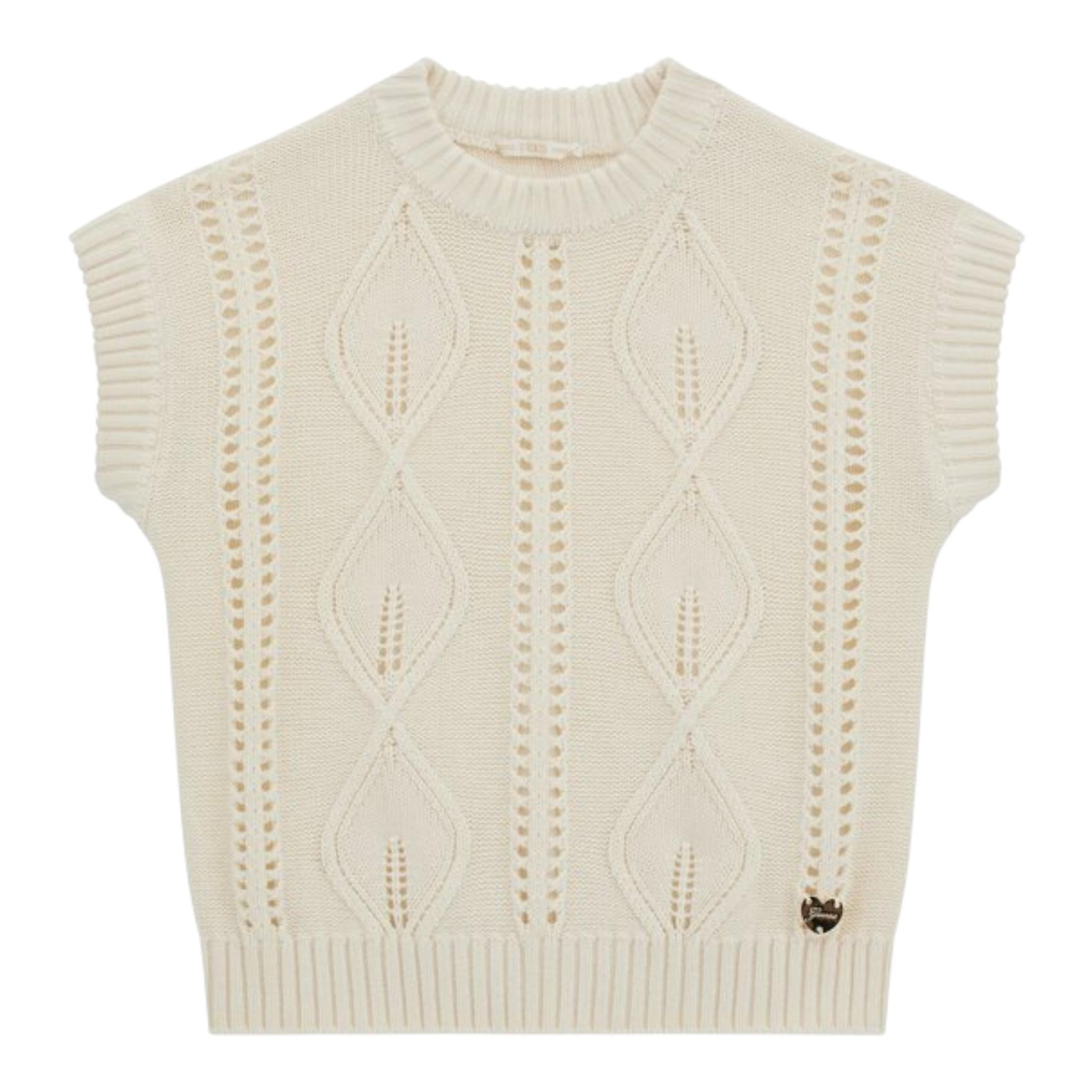 GUESS gilet tinta unita traforato Panna per Bambina