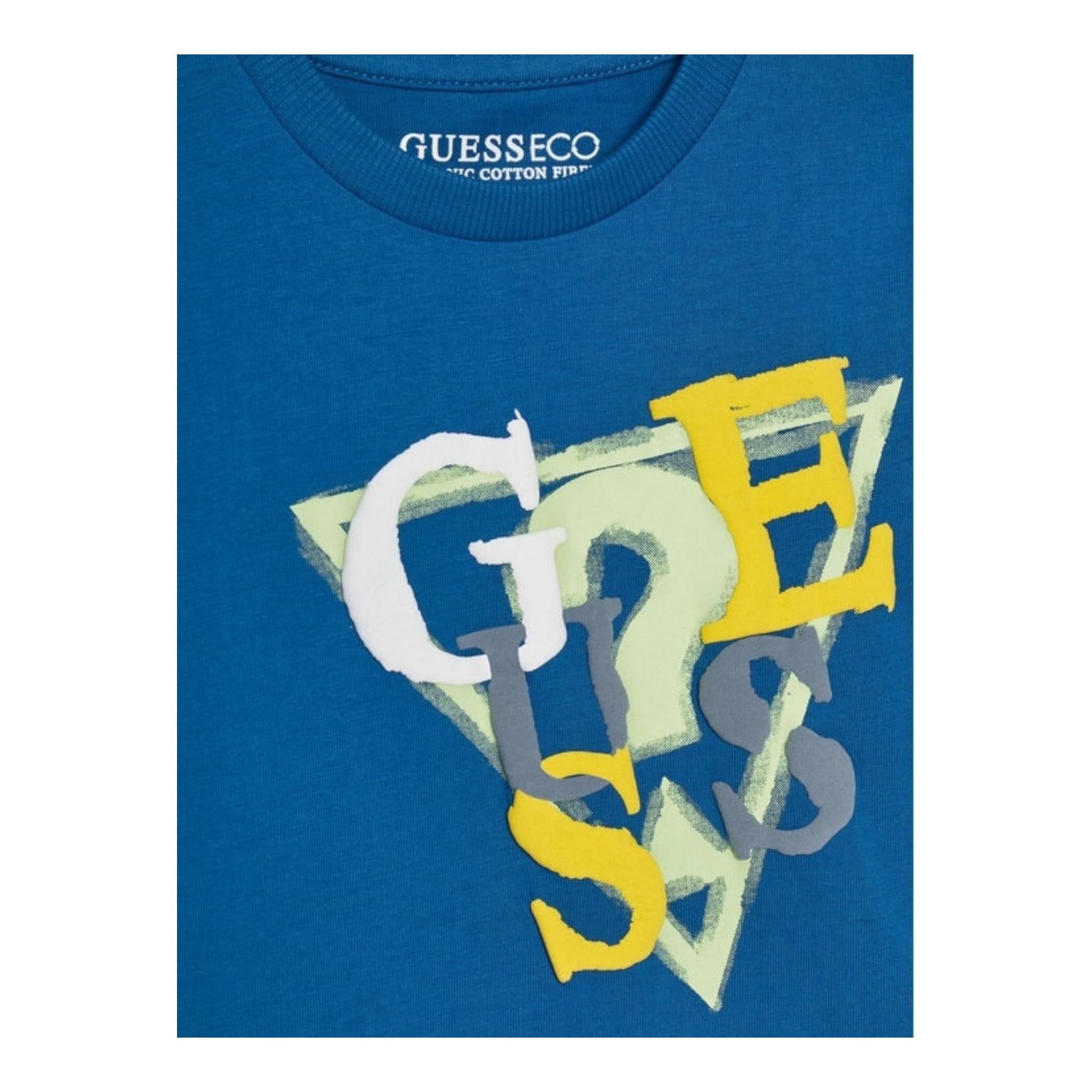 Guess T-Shirt Gircollo Tinta Unita con Stampa per Neonato