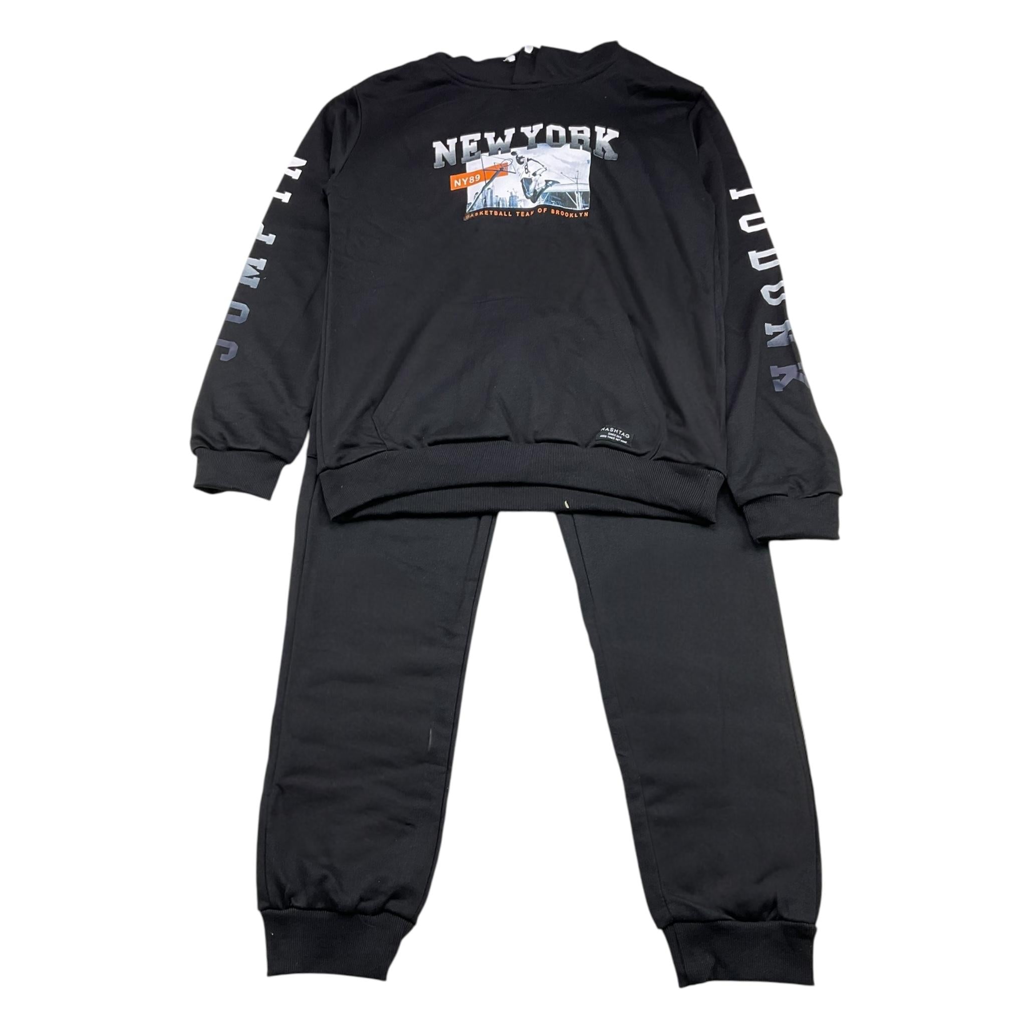 HASHSTAG FOR BOYS completo 2 pezzi felpa-pantalone tinta unita Nero per Bambino