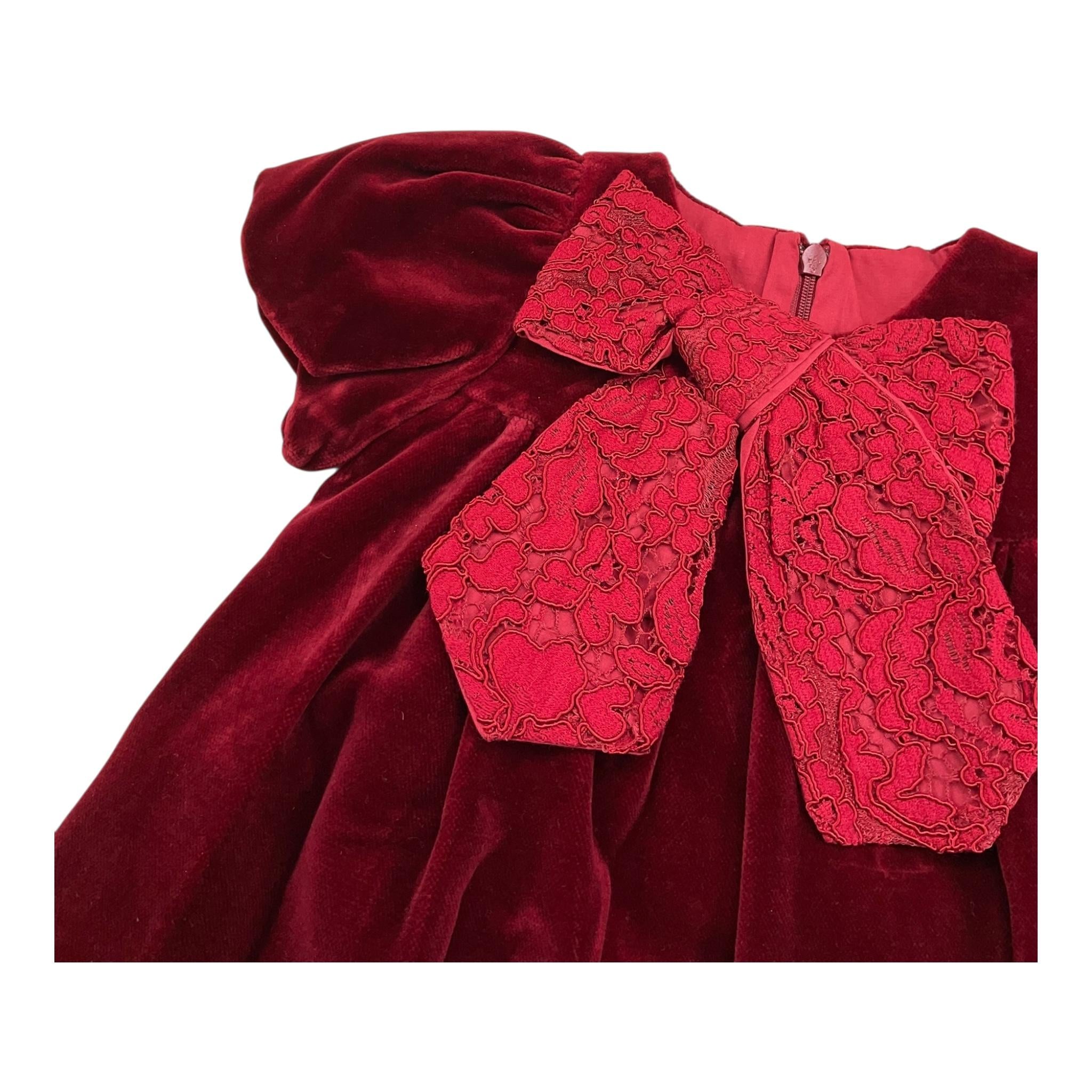 LA STUPENDERIA abito mezza manica tinta unita cn fiocco in velluto Rosso per Neonata