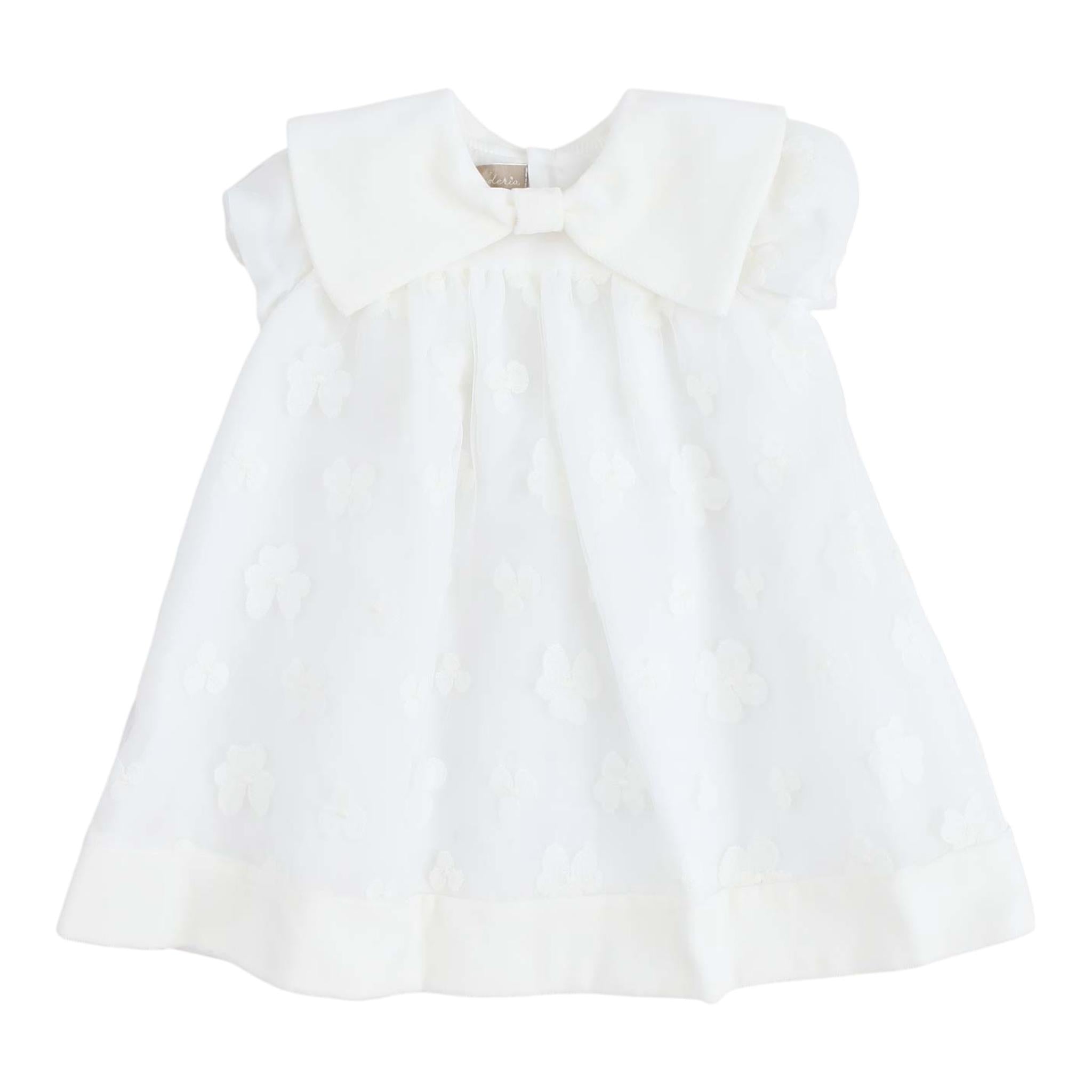 LA STUPENDERIA abito tinta unita mezza manica con ricami Bianco per Neonata CCAB24 BIANCO LA STUPENDERIA