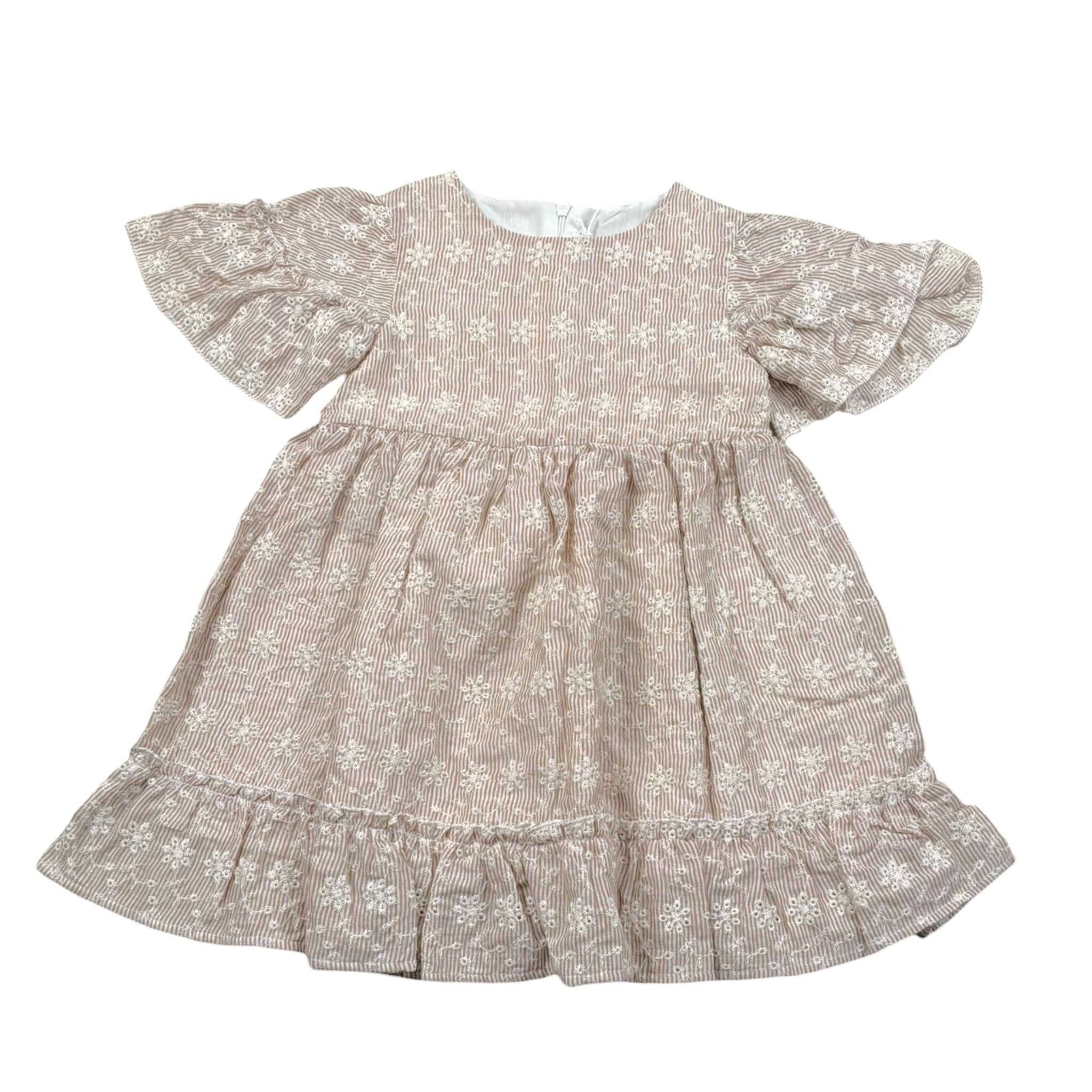 Lalalu' Abito Tinta Unita con Fantasia A Righe per Bambina