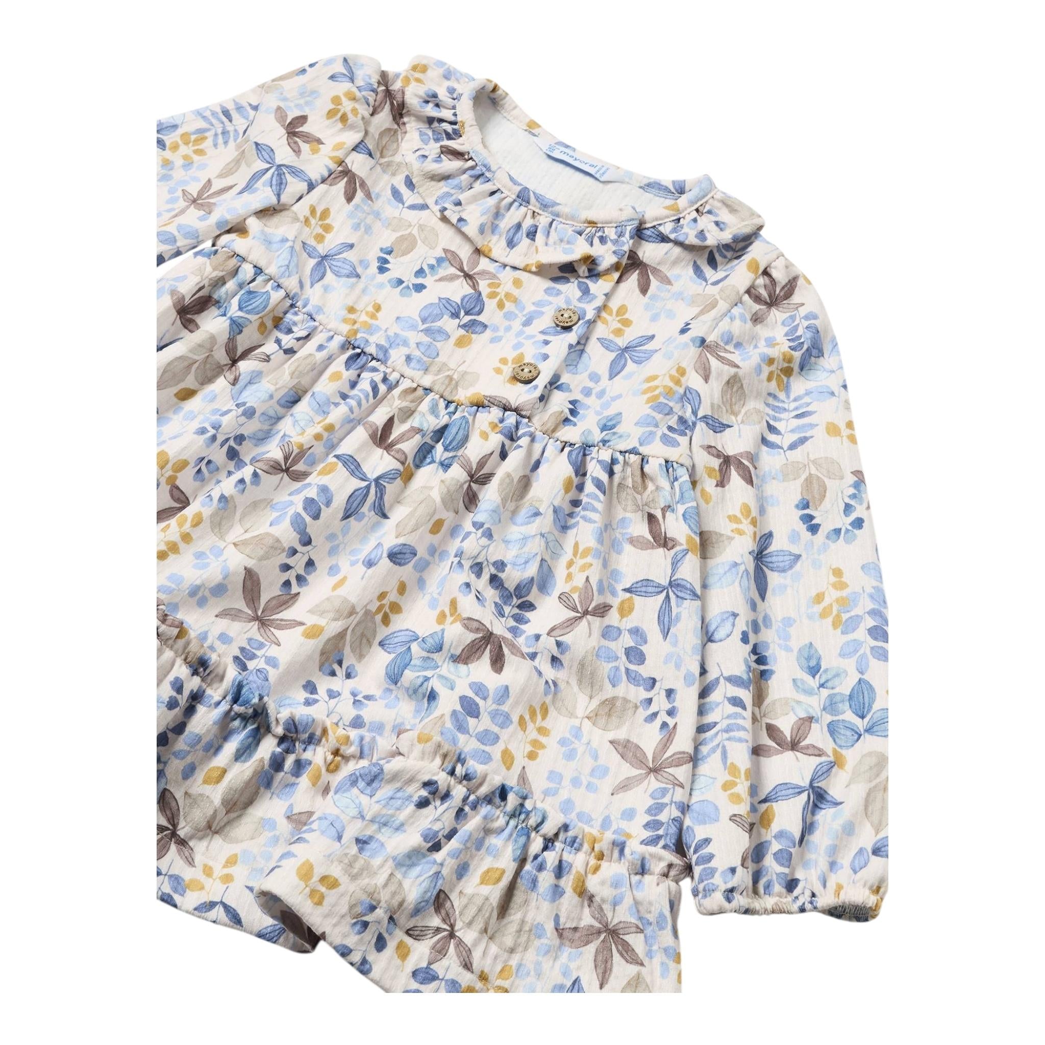 MAYORAL abito manica lunga tinta unita stampa fantasia firmata MAYORAL. Realizzata in: 98% cotone 2% elastane. Articolo per: Neonata