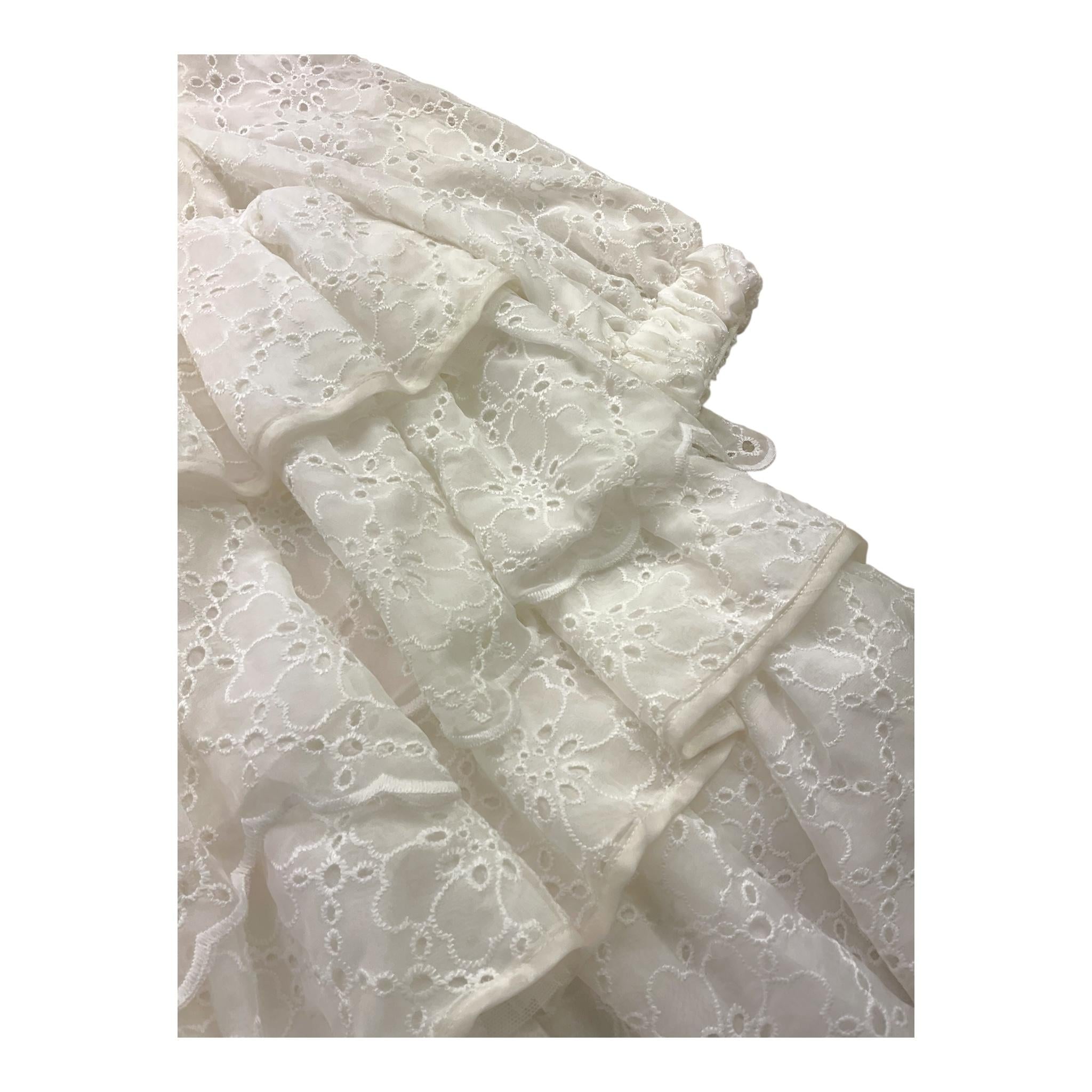 Mimisol Abito Tinta Unita Traforato con Ricami per Bambina