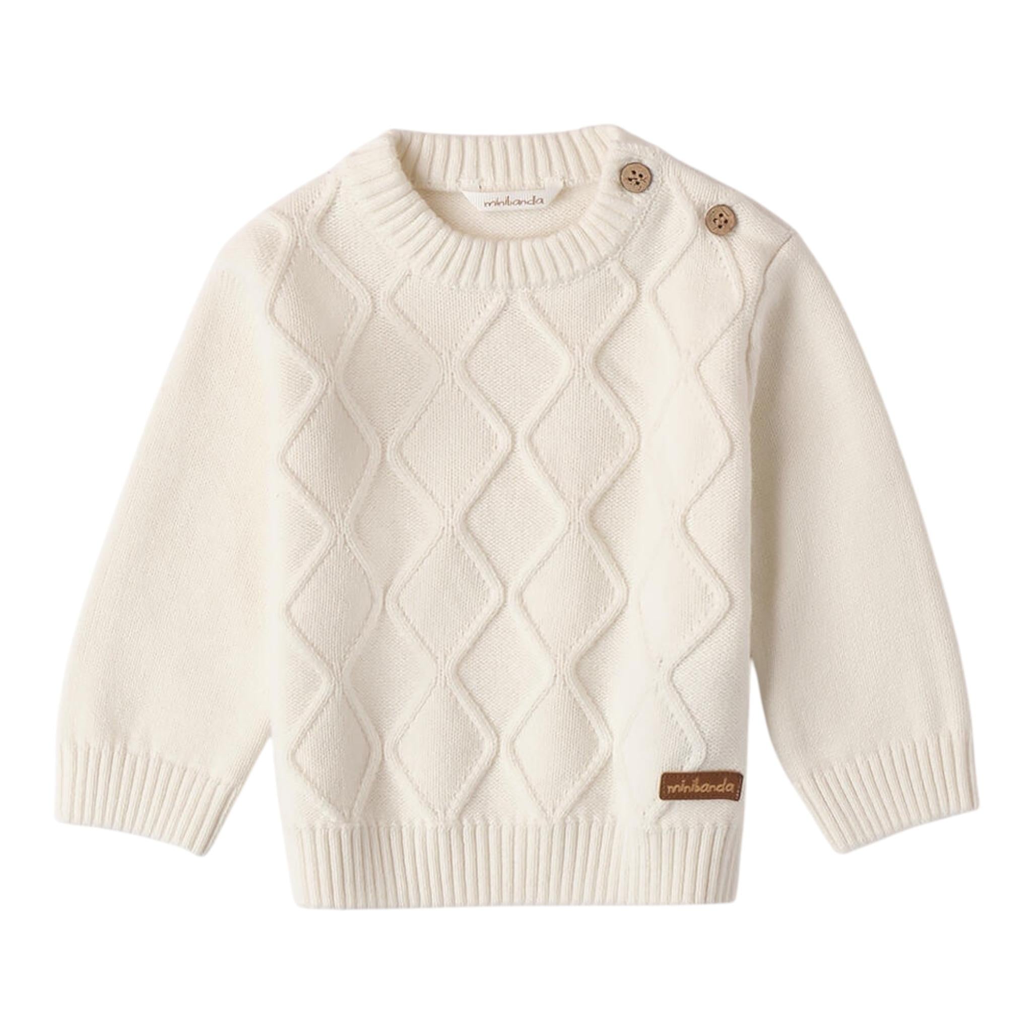 MINI BANDA maglia girocollo tinta unita Panna per Neonato