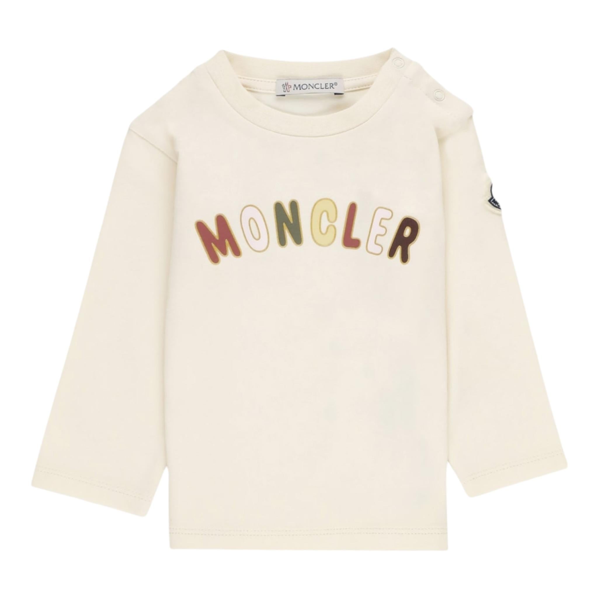 MONCLER shirt tinta unita girocollo con stampa Panna per Neonata