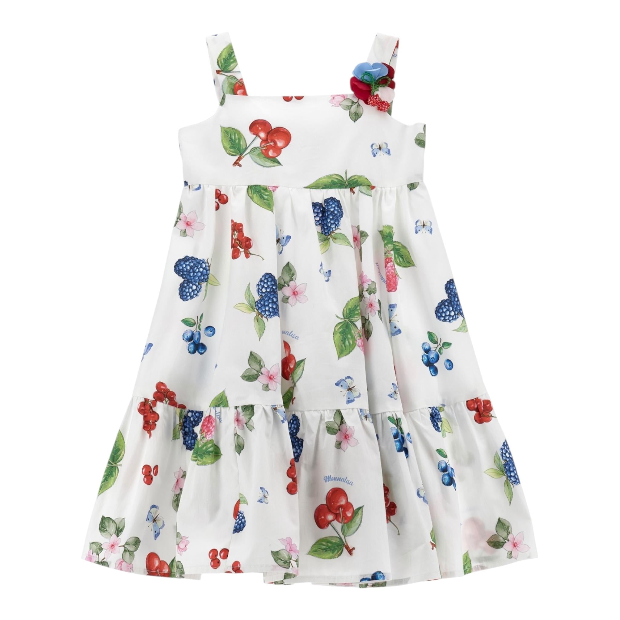 Monnalisa Abito Tinta Unita con Fantasia Fiori per Bambina