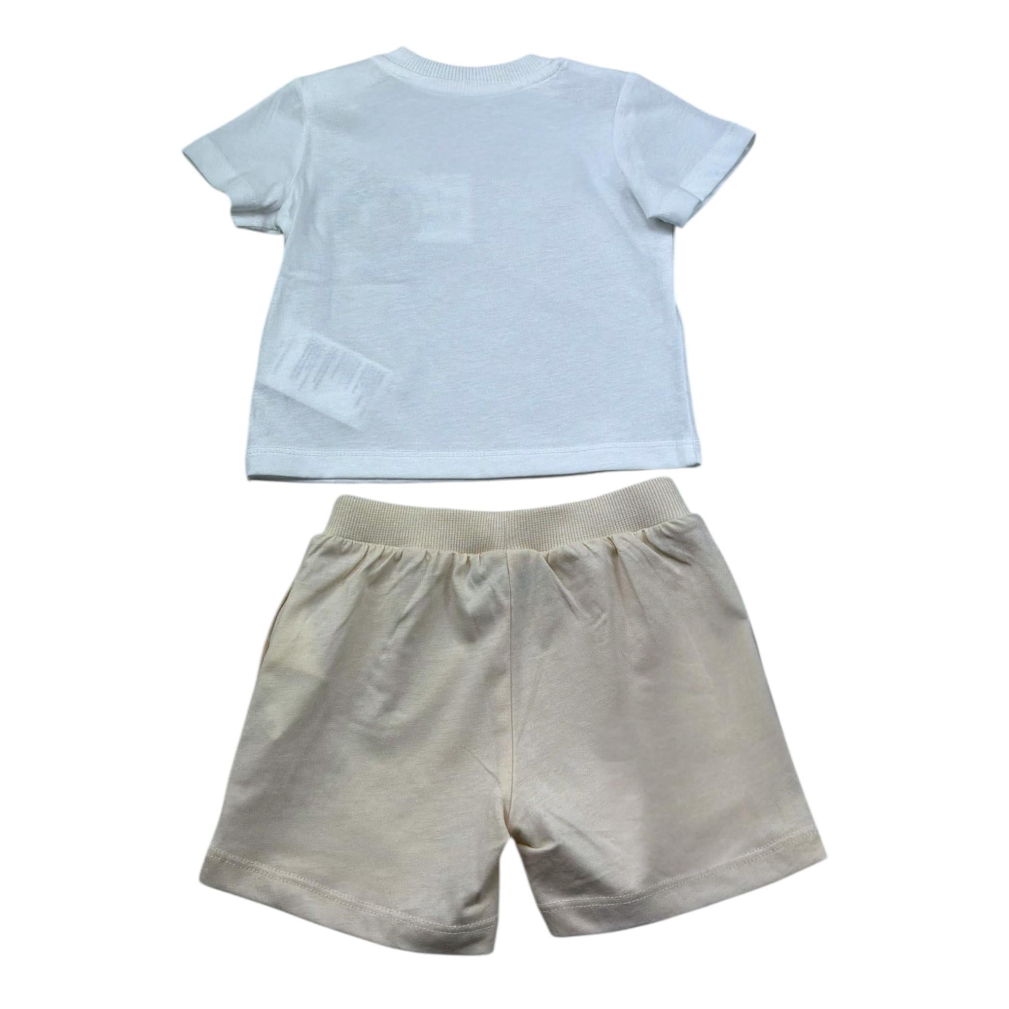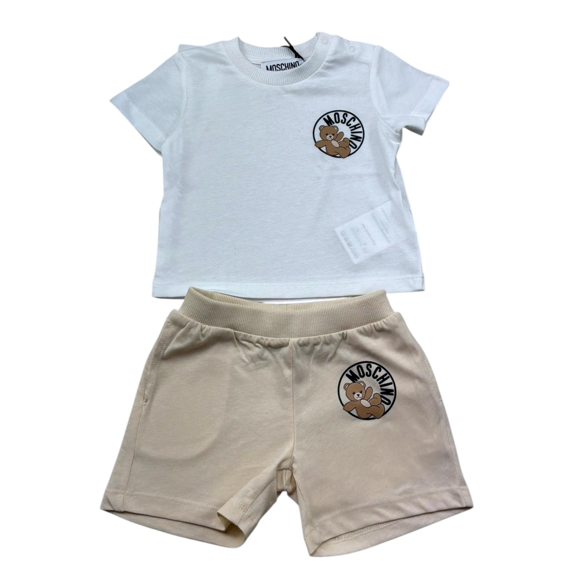 Moschino Completo 2 Pezzi T-Shirt-Bermuda Tinta Unita con Stampa per Neonato M6G00M BIANCO/BEIGE MOSCHINO