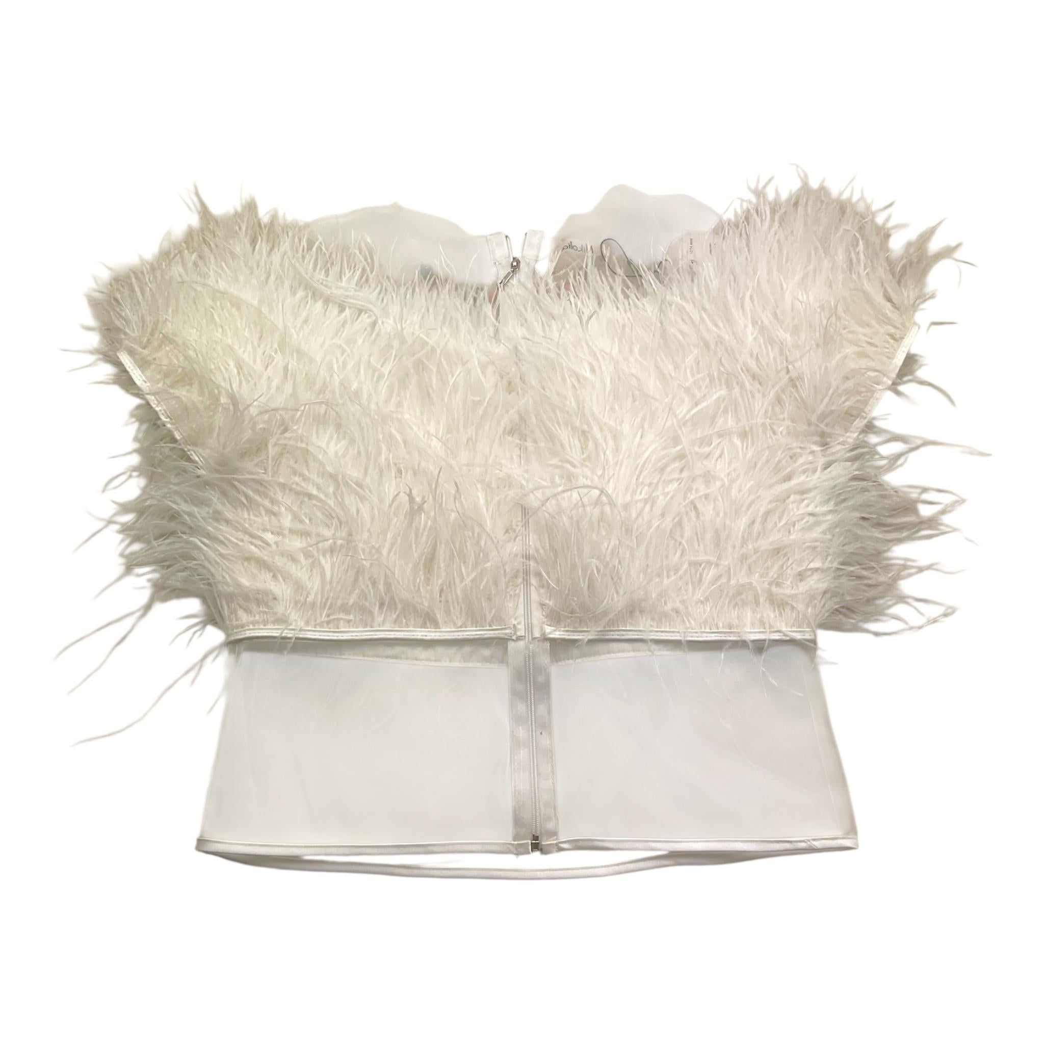 Nikolia Top Tinta Unita Giromanica con Piume per Bambina