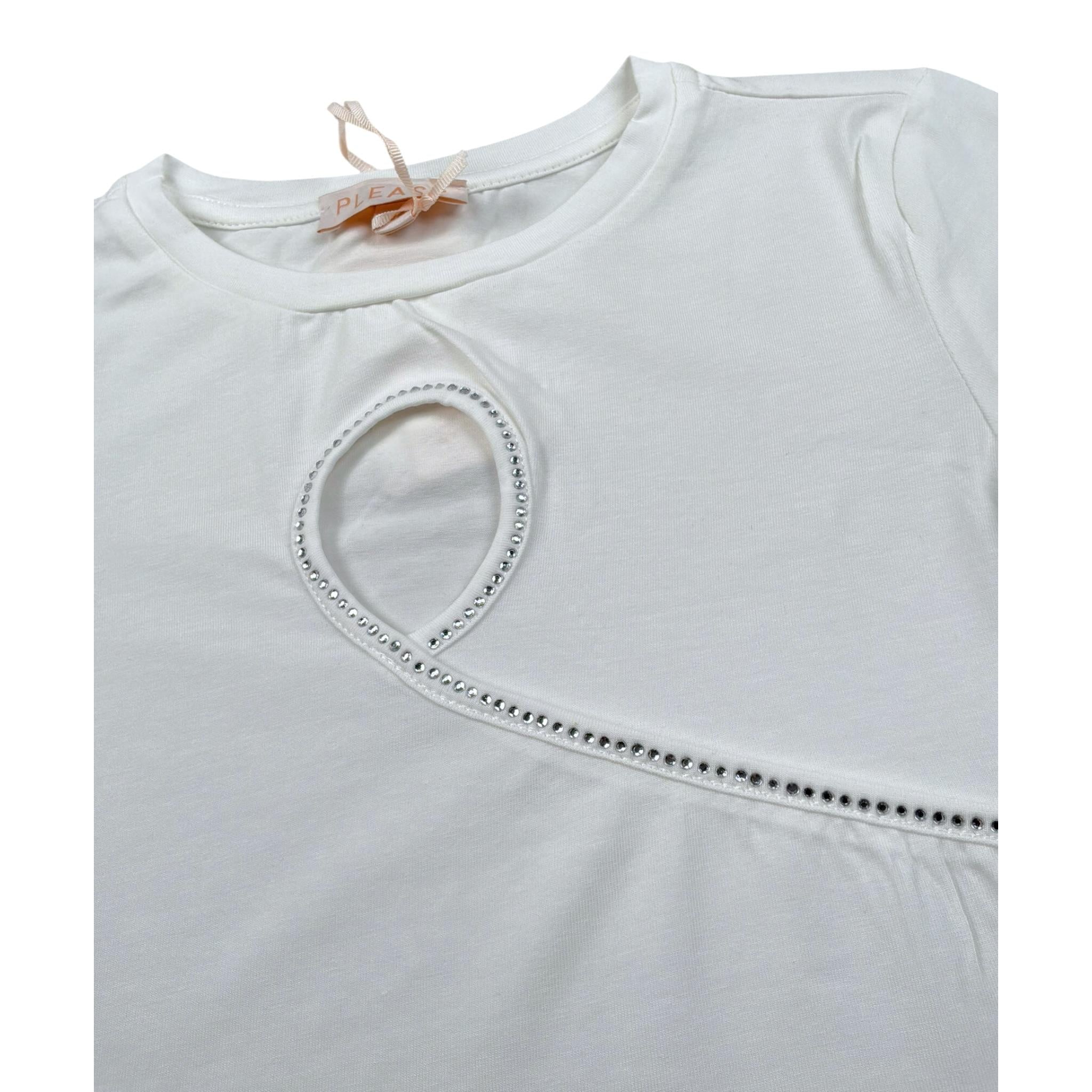 Please T-Shirt Modello Crop Tinta Unita con Brillantini per Bambina