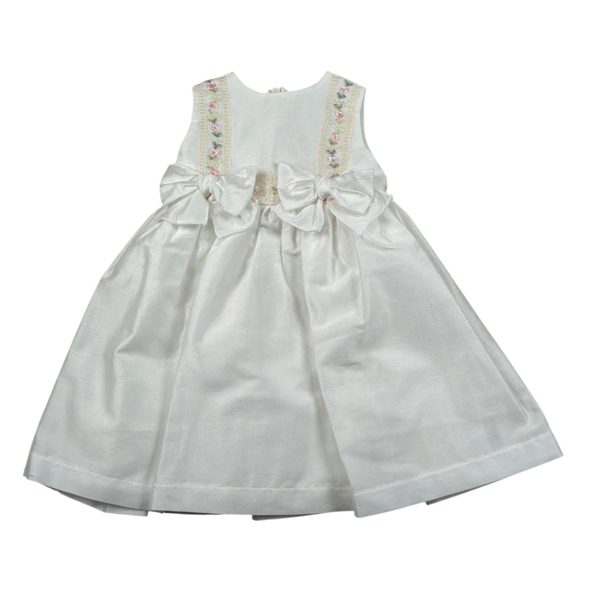 Pure Firenze Abito Giromanica Tinta Unita con Ricamii per Neonata