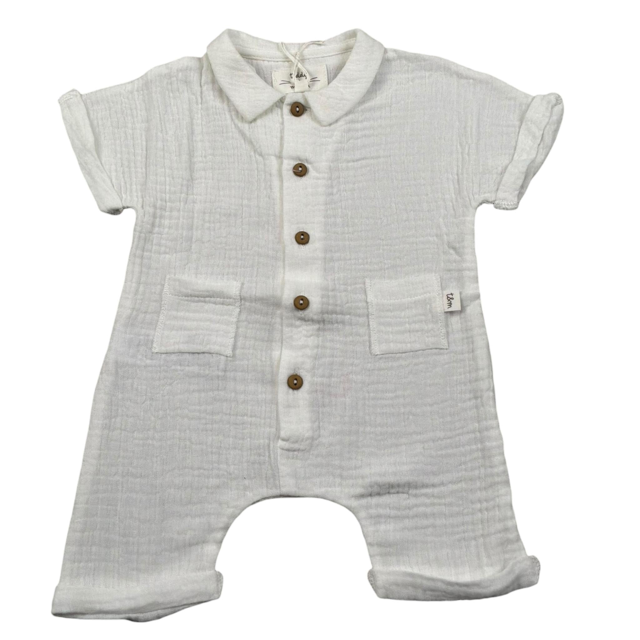 Teddy E Minou Pagliaccetto Mezza Manica Tinta Unita per Neonato